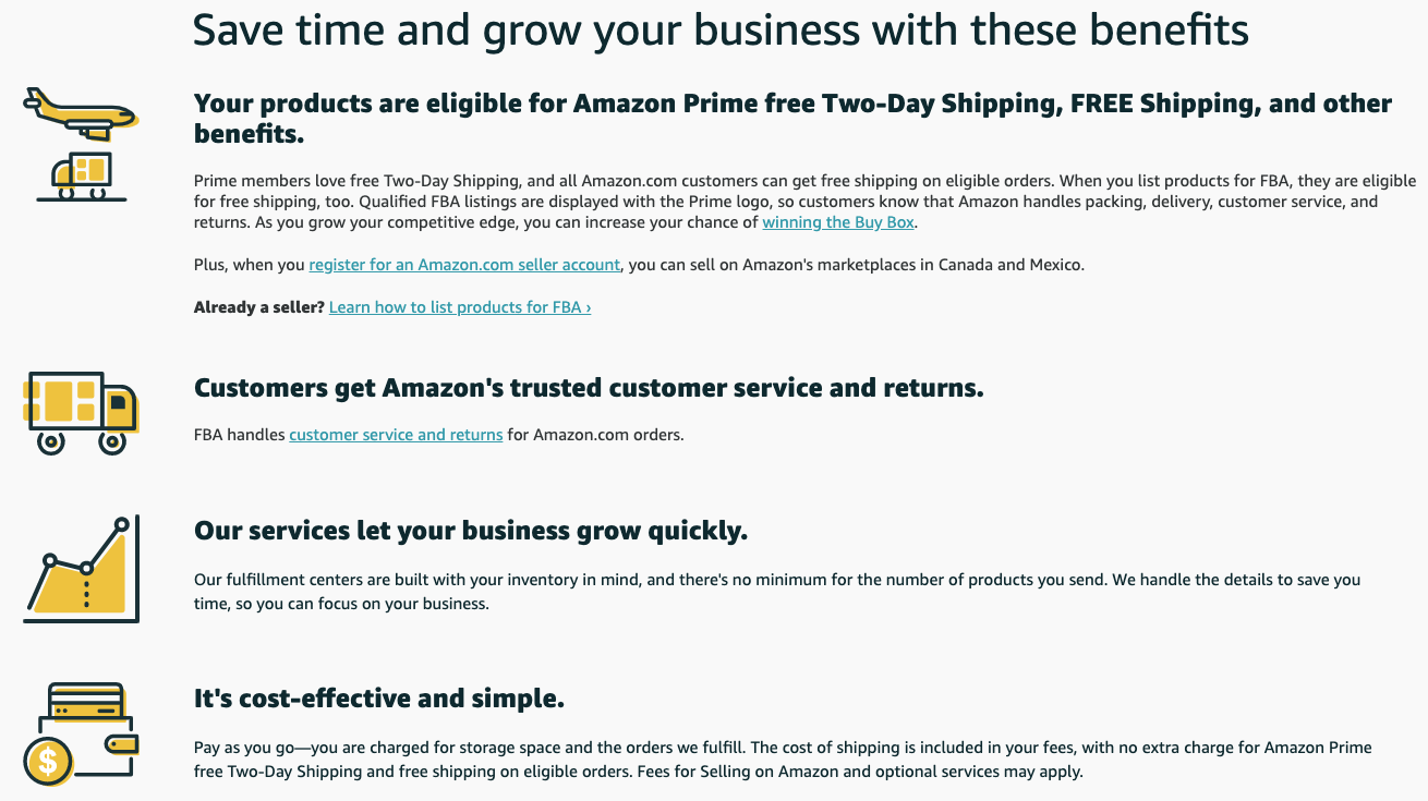 - Frees up your time: Everything logistics-related is taken care of by Amazon while you can focus on strengthening your business.