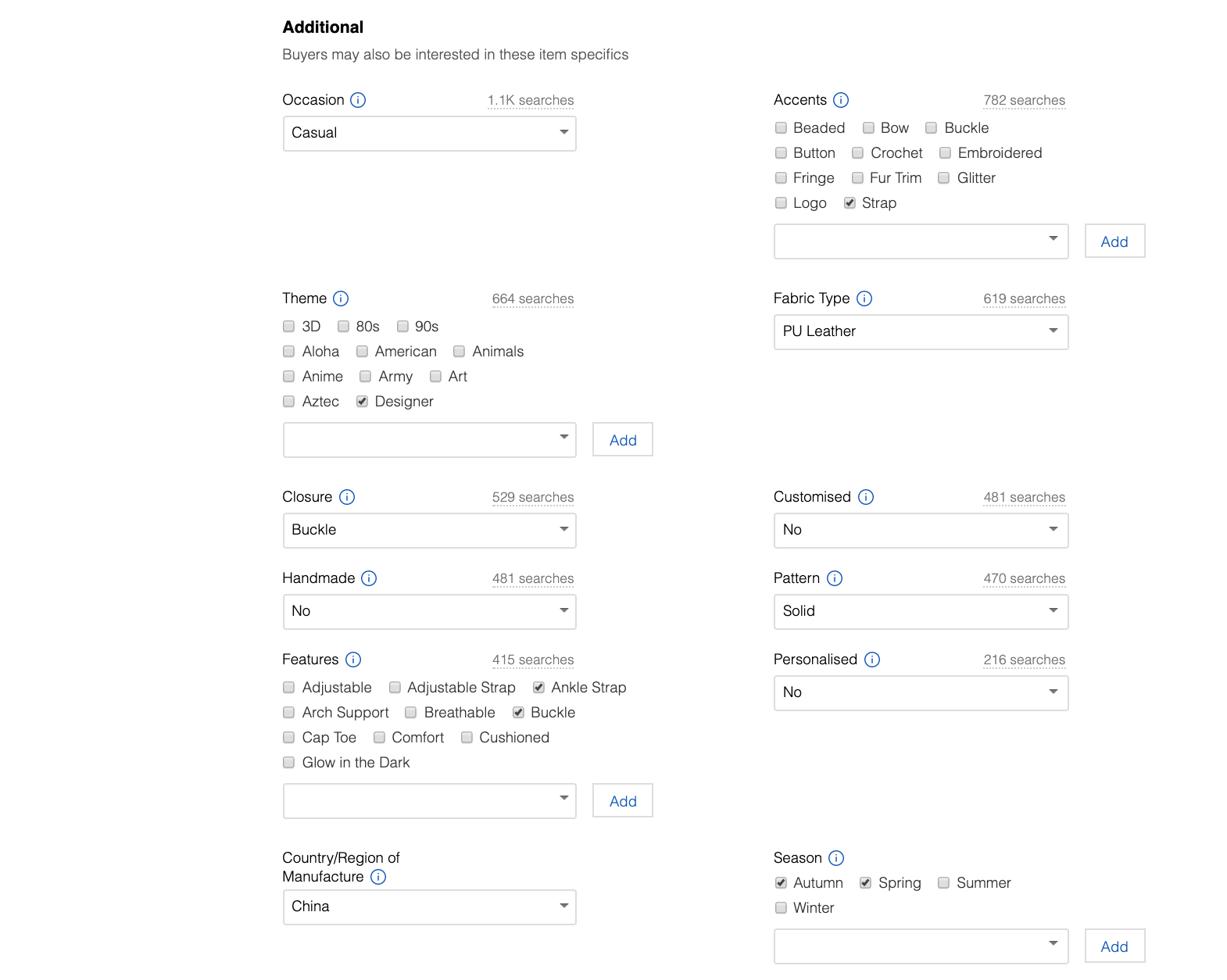 - Finally, fill out the additional fields. eBay will give you approximate data of how many buyers have searched for certain item specifics, so it is ideal to consider the facts while filling out the fields to get the best out of your listing!