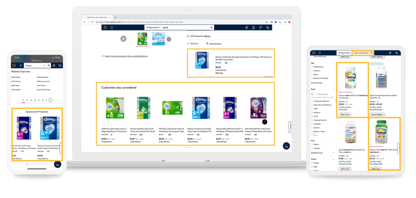 Finally, we recommend signing up for the Walmart advertising platform. Walmart Sponsored Products service is the best way to rapidly expand your reach to a massive audience. Much like Amazon Sponsored Ads, there are three ad placements:
